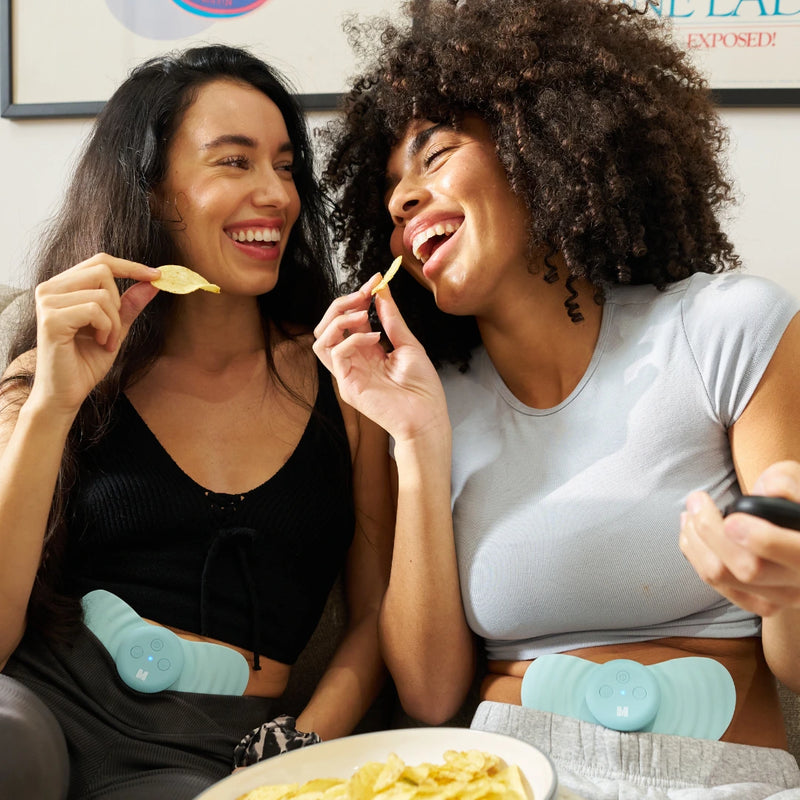 Place Myoovi 2.0 on your stomach (or area of pain). It sends gentle pulses and soothing heat through the pad.